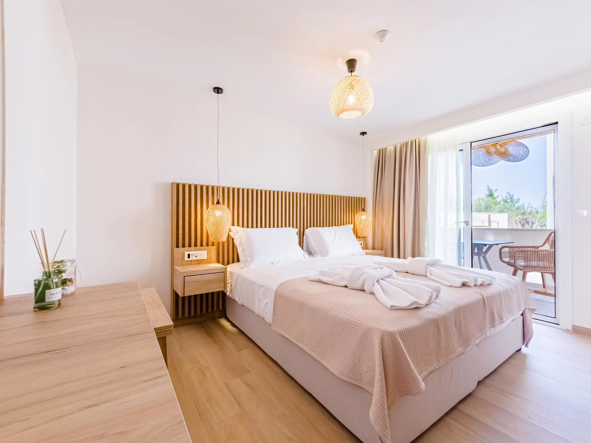 Our rooms feature earthy tones and natural materials, creating a warm and inviting atmosphere. Large windows offer stunning views of the pine forest and sparkling waters.